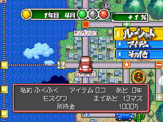 プレイ年数は1年から100年。2つのマップと、個性の異なる12人のライバルキャラが用意されています。