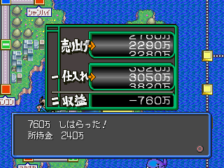 ゲーム中、指定された都市に辿り着くとボーナスがもらえたり、突発的なイベントが発生したり、景気の変動があるのが特徴です。「いただきストリート」や、同じくタカラから発売された 「DX億万長者ゲーム」 のような 「モノポリー」 系の買収合戦ゲームではなく、イベントを中心に進行します。