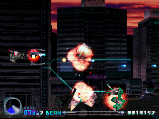 1993年にスーパーファミコンで発売された大人気シューティングゲーム 「R-TYPE III」 の続編です。背景・自機・敵機など全てがポリゴンで3D化されています。また、任意でスピード調整できるようになったり、地形に接触してもミスにならなかったりと、細かいようですが、プレイする上ではとても大きな変更があるのも特徴です。