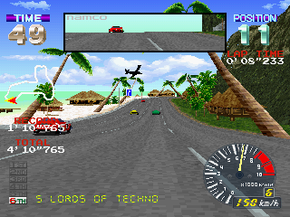 ・ロード画面で 「ギャラガ'88」 が遊べる。クリアすると通常の4車種に加えライバルカーも選択可能に。
